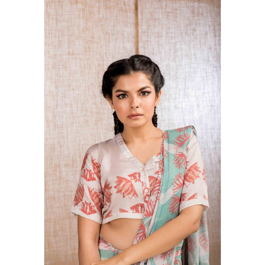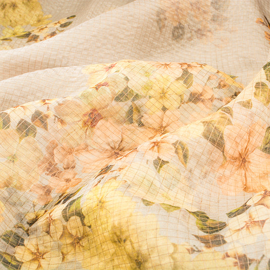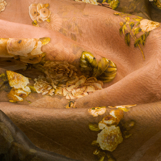 Chocolate to Salmon Pink Digital Printed Organza Saree