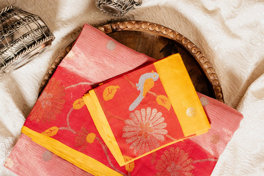 Scarlet Red Handwoven Banarasi Kora Organza Saree