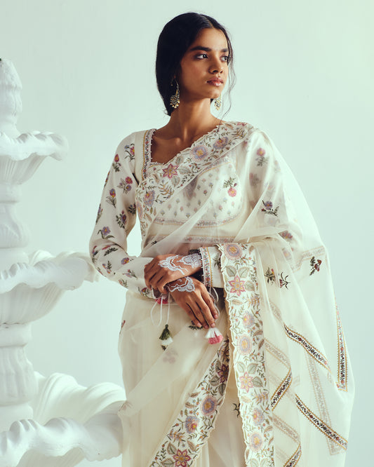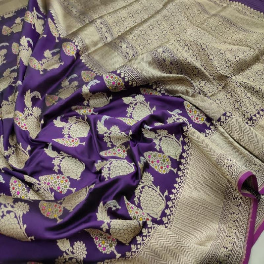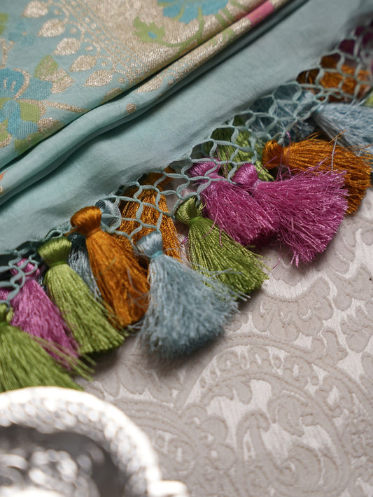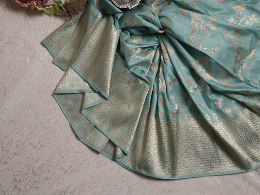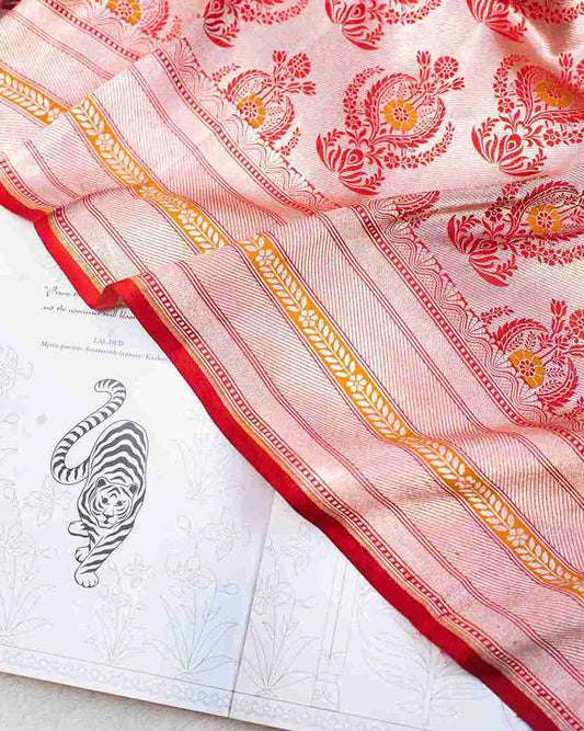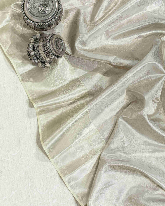 Silver Zari Tissue Floral Brocade Banarasi Saree