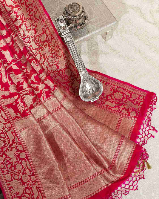 A Royal Banarasi Shikargah in Deep Rani Pink