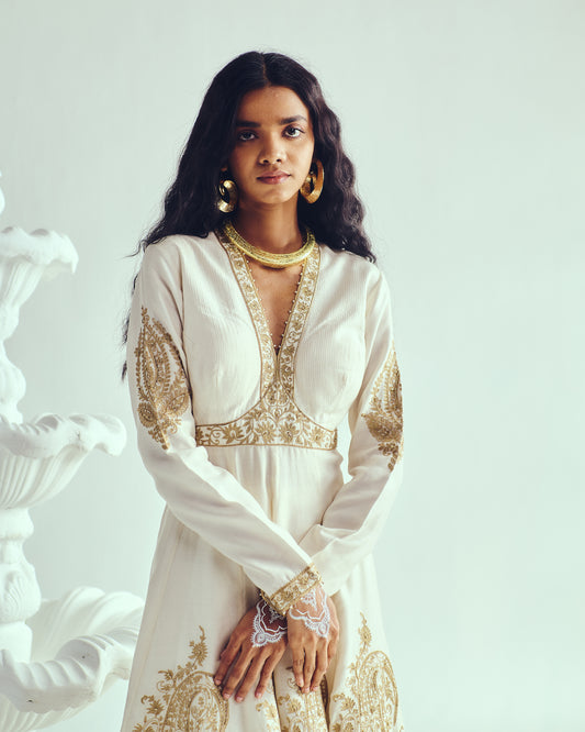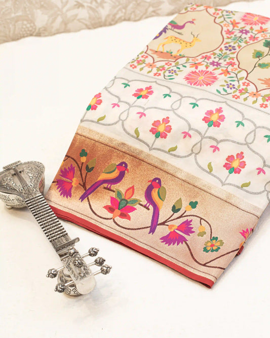 Off-White Handwoven Paithani Saree with Shikarga Motifs