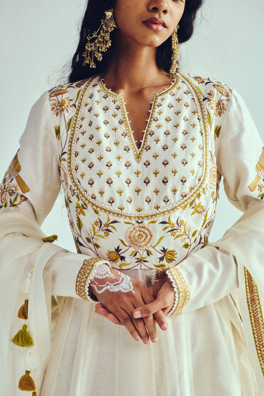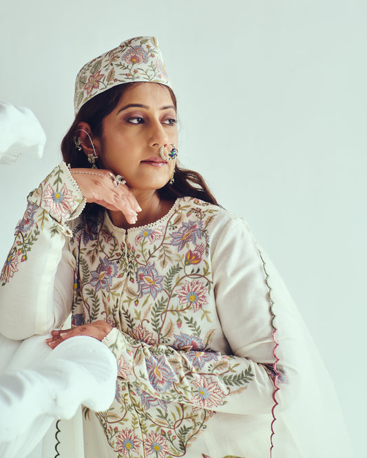 Floral Serenity – Cream Zari Kota Paithani Saree
