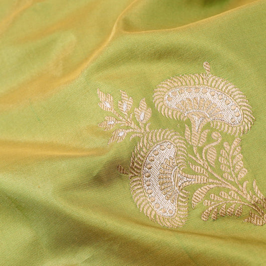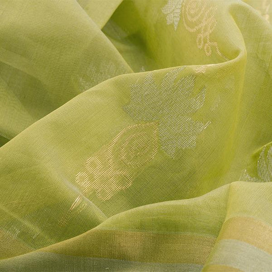 Handwoven Lime Green Chanderi Sari - WIIHSBHARIDNAM010B