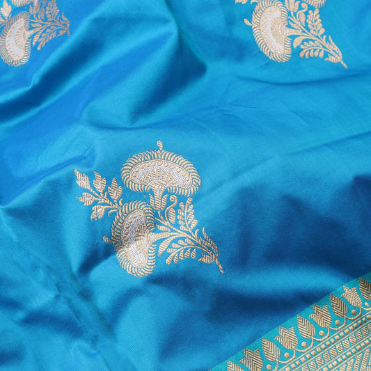 Handwoven Sea Blue Banarasi Silk Sari - WIIBT0034