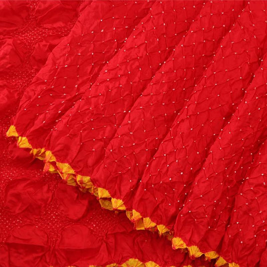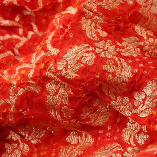 Handwoven Tomato Red Bandhani Habutai Silk Sari - WIIAJB268 121(2)