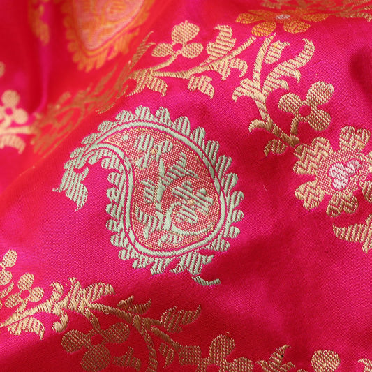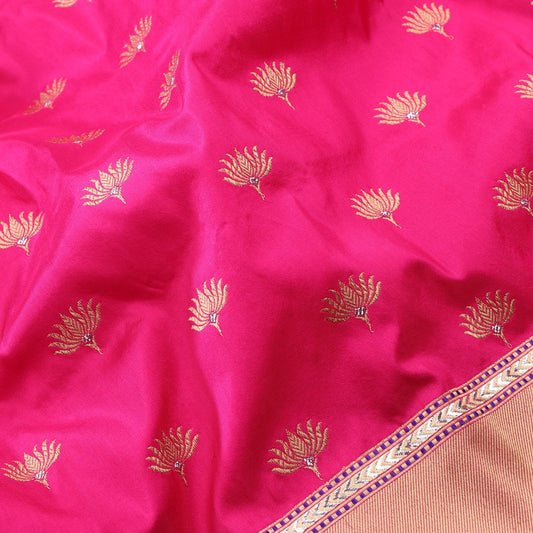 Handwoven Bright Pink Banarasi Silk Sari - WIIBT0051