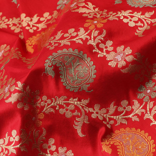 Handwoven Sindoori Red Keriya Banarasi Silk Sari - WIIBT0085