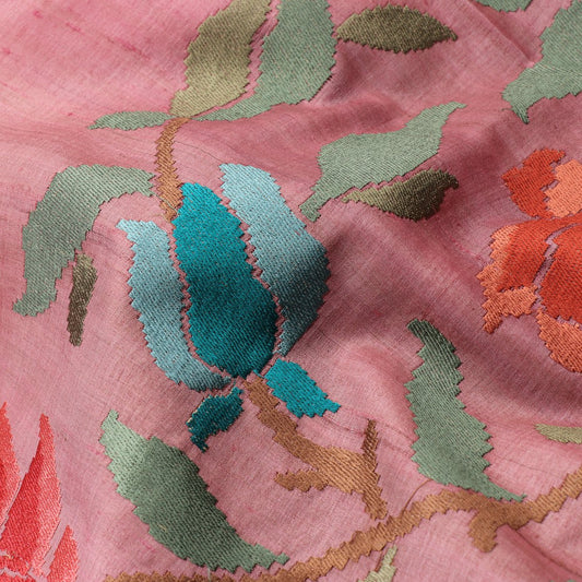 Handwoven Onion Pink Tussar Silk Sari Sari - WIISHNIKARIDNAM0108