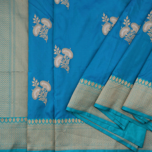 Handwoven Turquoise Blue Banarasi Silk Sari - WIIBT0013