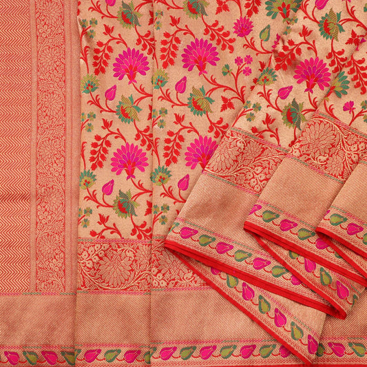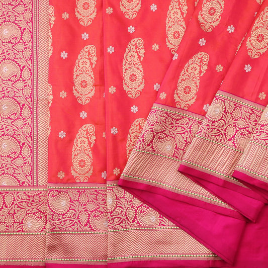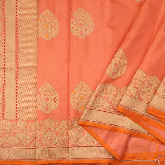 Handwoven Salmon Orange Banarsai Silk Sari - WIIEDT1135 012B