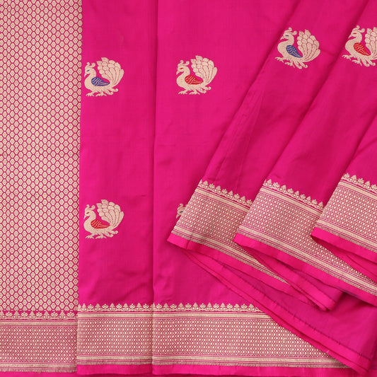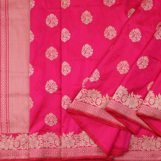 Handwoven Fuschia Pink Banarasi Silk Sari - WIIRJ10120012