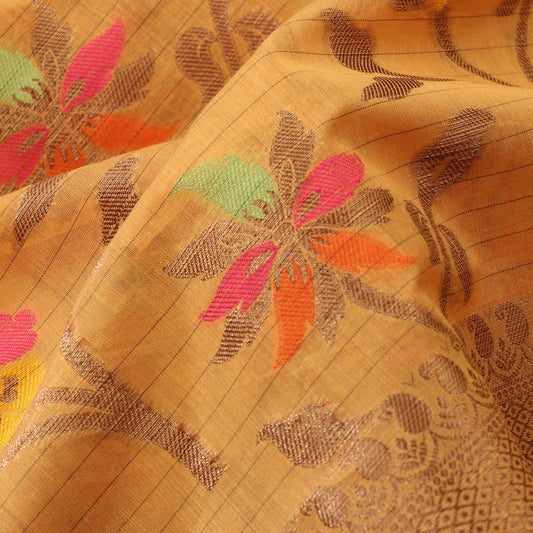 Papaya Orange Silk Cotton Chanderi Saree