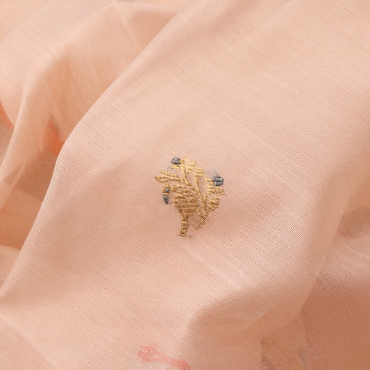Handwoven Peach Silk Cotton Chanderi Sari - WIIAPRI CEBS -1