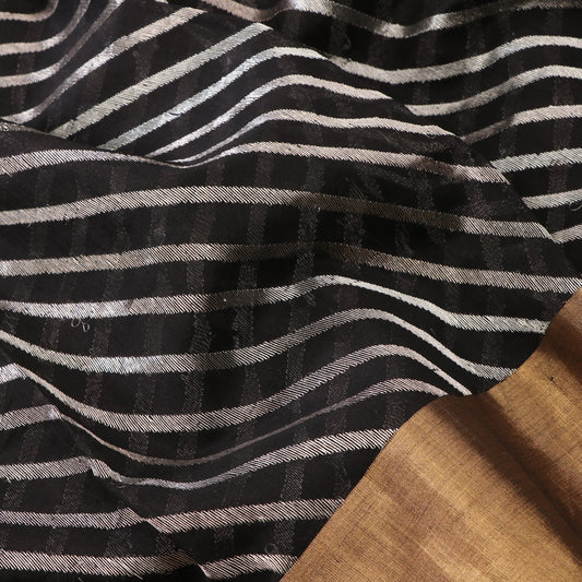 Handwoven Black And Silver Diagonal Stripes Silk Cotton Chanderi Sari - WIIAPRI CFJS(6)