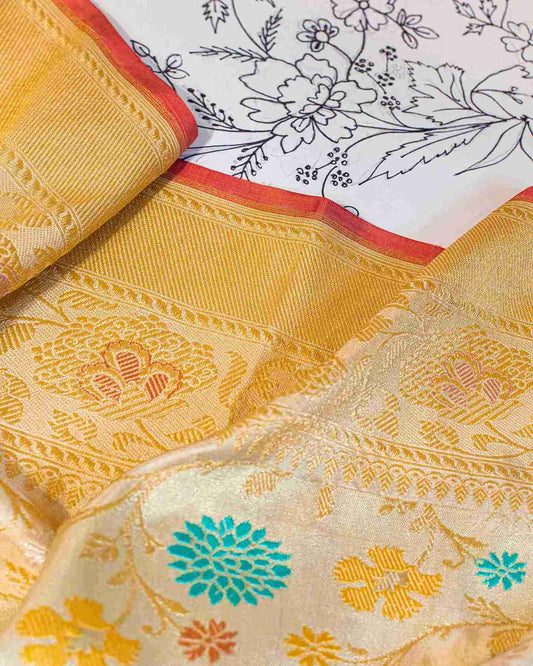 Handwoven Ecru & Gold Banarasi Silk Brocade SareeRegular price ₹68,555Regular priceUnit price / per₹68,555Sale price ₹68,555
