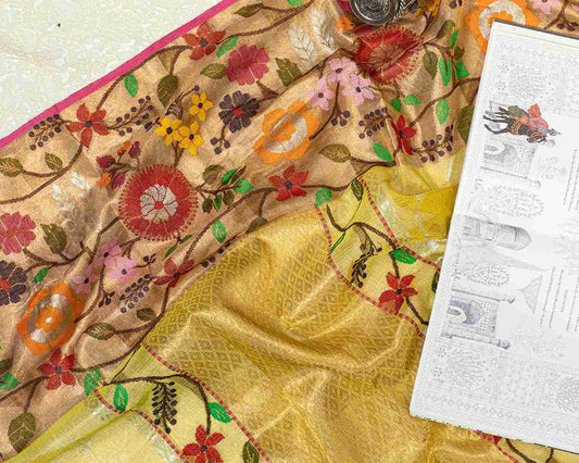 Gold Kota Tissue Saree with Floral Paithani BorderRegular price ₹65,555Regular priceUnit price / per₹65,555Sale price ₹65,555