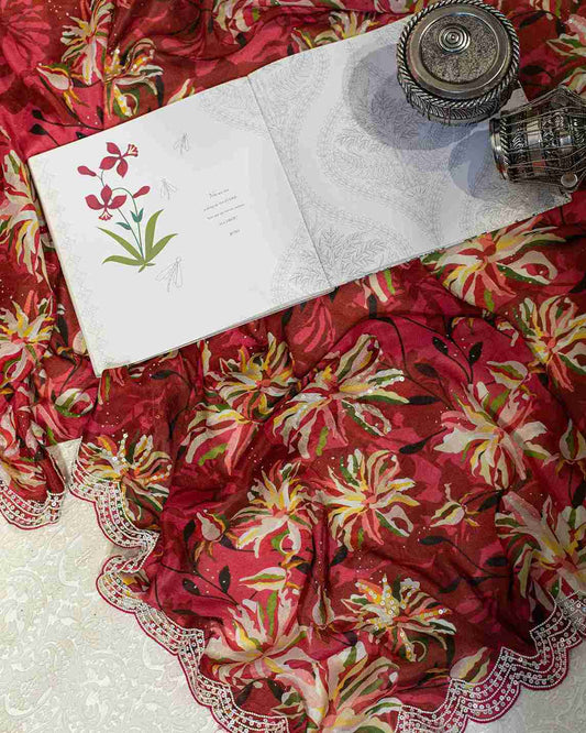 Scarlet Red Chiffon Saree with Hand-Embroidered Sequin ScallopsRegular price ₹34,999Regular priceUnit price / per-