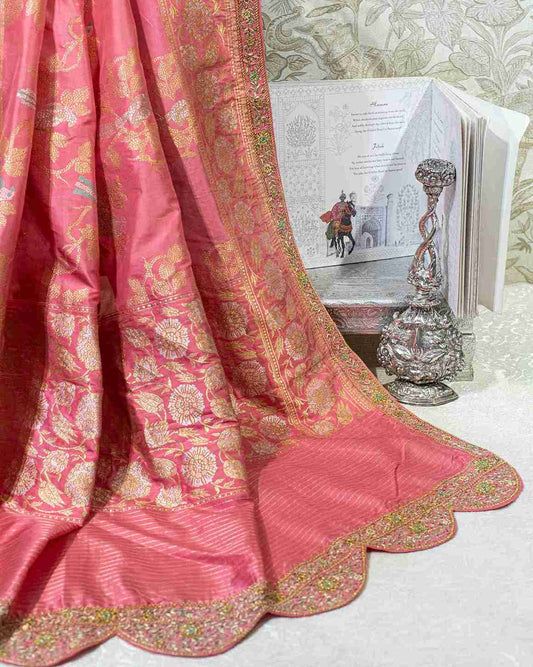 Flamingo Pink Banarasi Silk Kadwa Jaal SareeRegular price ₹159,999Regular priceUnit price / per₹159,999Sale price ₹159,999