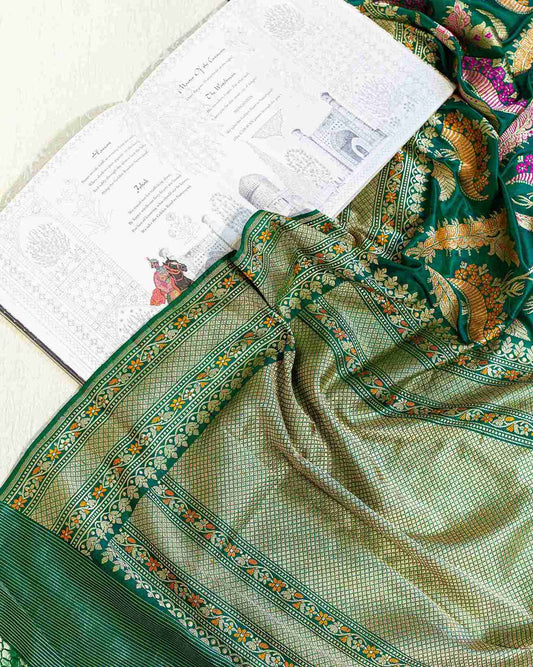 Handwoven Green Banarasi Pure Silk Saree with Meenakari Floral JaalRegular price ₹125,555Regular priceUnit price / per₹125,555Sale price ₹125,555