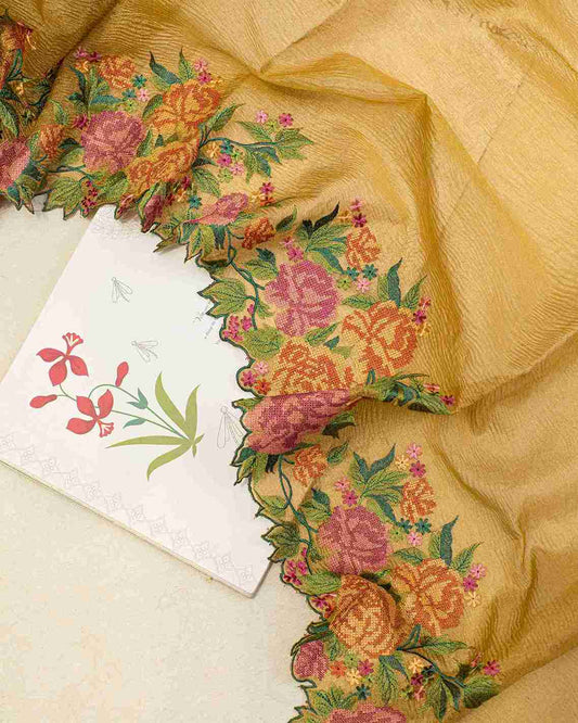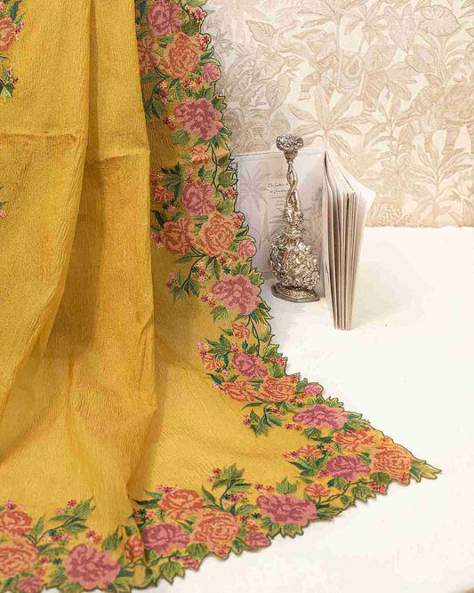 Gold Crush Tissue Sari with Floral BorderRegular price ₹13,500Regular priceUnit price / per₹18,999Sale price ₹13,500Sale