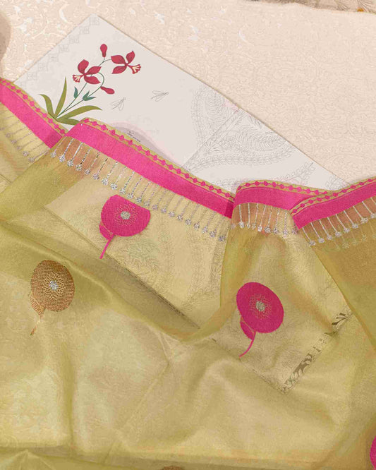 Chartreuse Crush Tissue Sari with Floral BorderRegular price ₹18,999Regular priceUnit price / per-