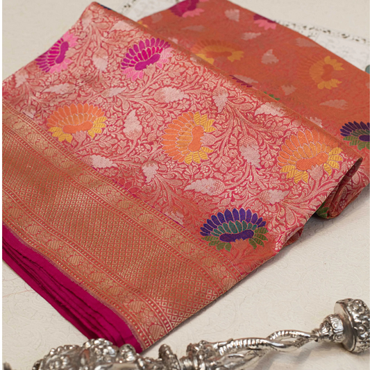 Coral Pink Handwoven Banarasi Tissue SariRegular price ₹125,555Regular priceUnit price / per₹125,555Sale price ₹125,555