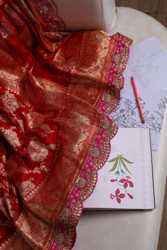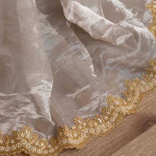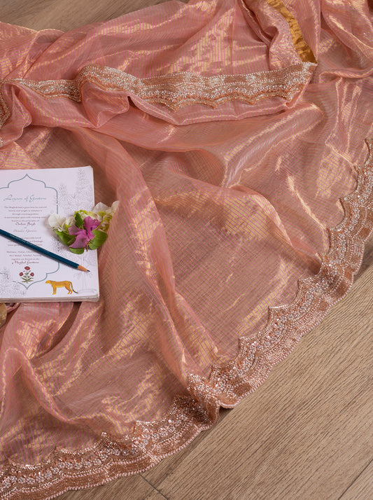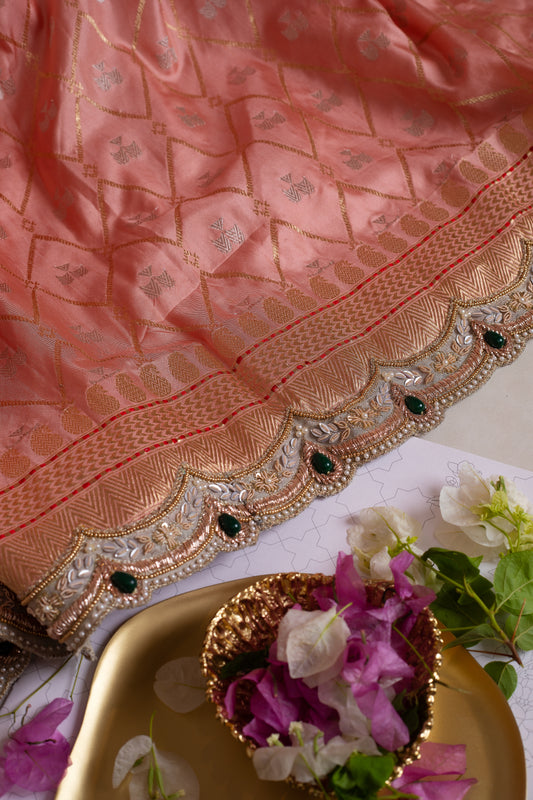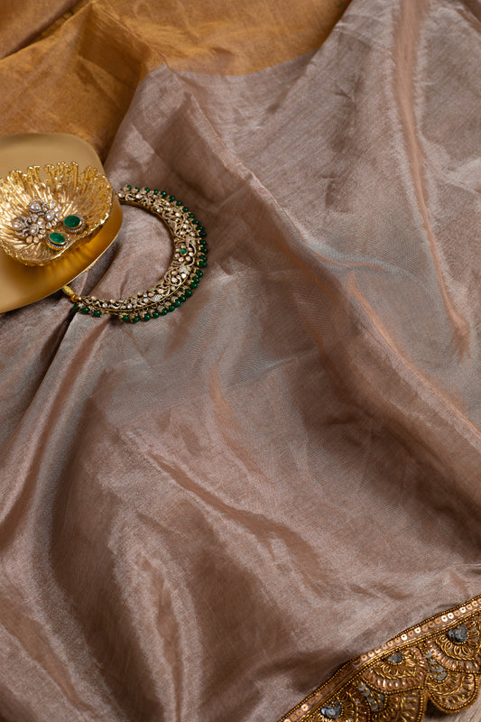 Mauve Shaded Hand Embroidered Bandhani Saree