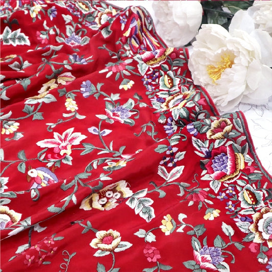 Red Hand Embroidered Parsigara Saree
