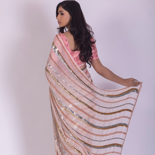 Blush Pink Chanderi Tissue Silk Hand Embroidered Saree - Pre Order