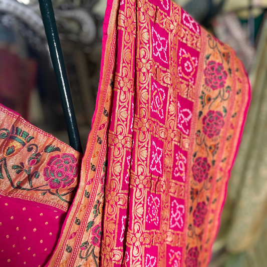Sold outRani Pink Gharchola Bandhani Saree
