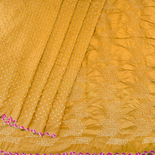Mustard Hand Embroidered Bandhani Saree