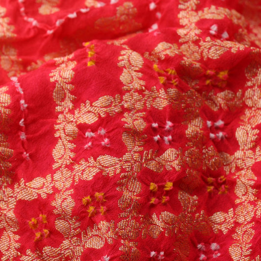 Handwoven Chilli Red Banarasi Bandhini Dupatta - WIIPRK0020