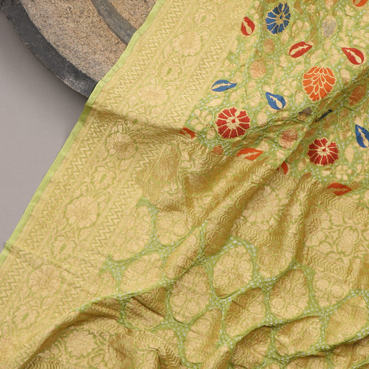 Handwoven Pista Green Georgette Banarasi Bandhani Dupatta - WIIAJB236 113