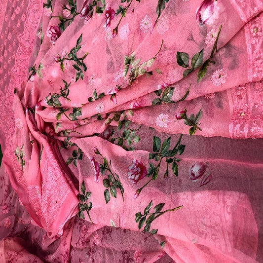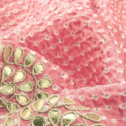 Canyon Rose Pink Bandhani Banarasi Georgette Sari