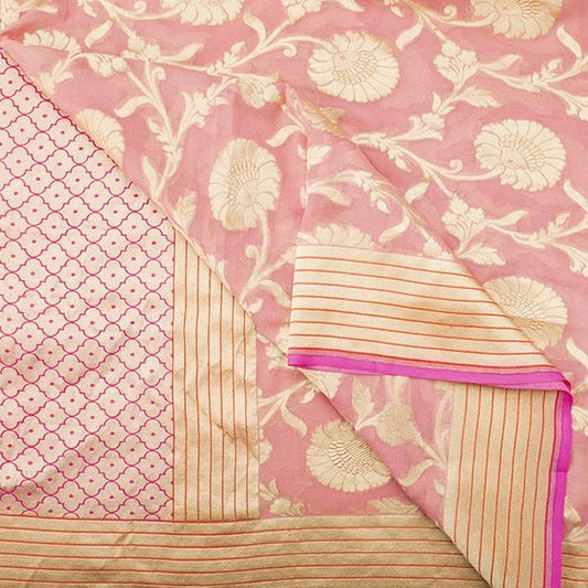 Handwoven Pink Banarasi Khadi Tussar Georgette Sari- WIISHNIKARIDNAM0198