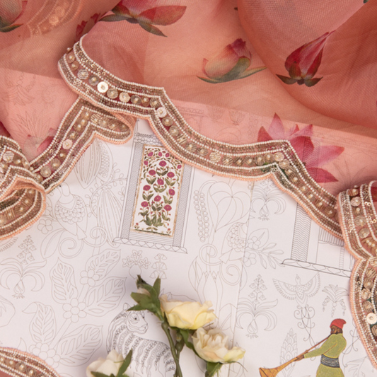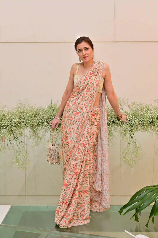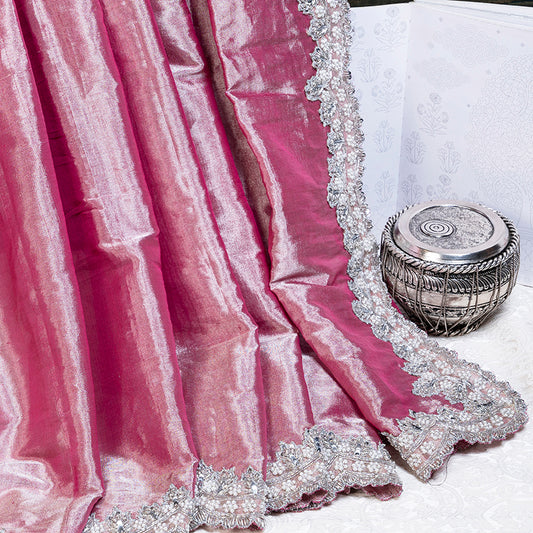 Blush Pink Chanderi Tissue Silk Hand Embroidered Saree - Pre Order