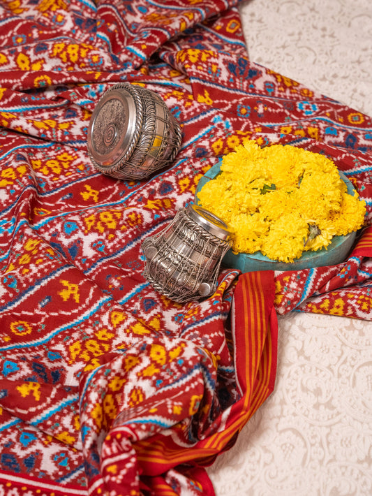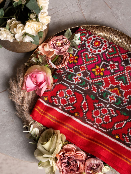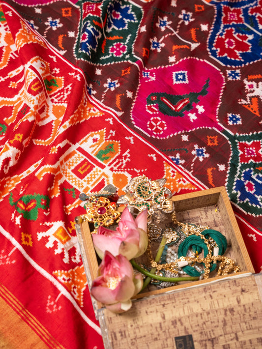 A Patan Patola saree is a traditional Indian saree, famously made in Patan, Gujarat.