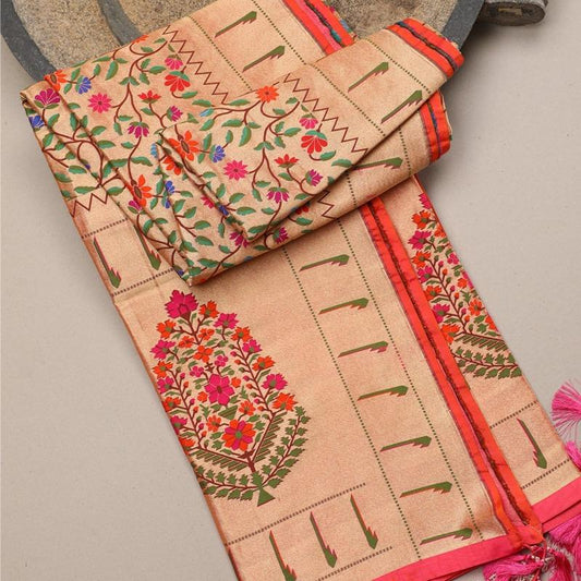 Peachy Orange Paithani Banarasi Silk Dupatta