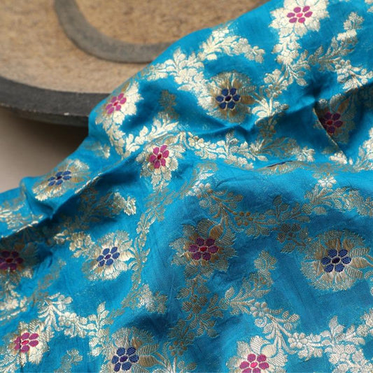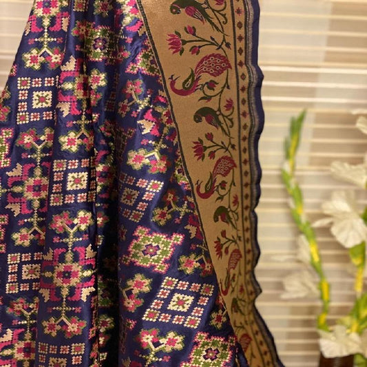Sold outHandwoven Blue Banarasi Silk Dupatta