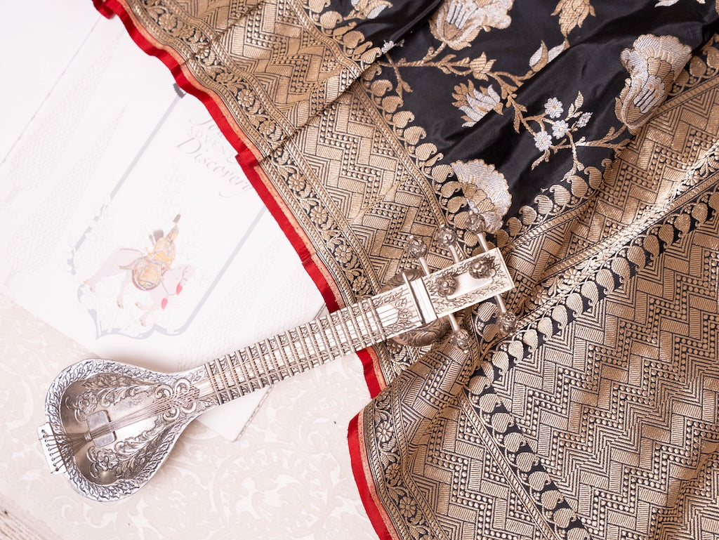 Black Banarasi Silk Saree with Gold Zari Pallu
