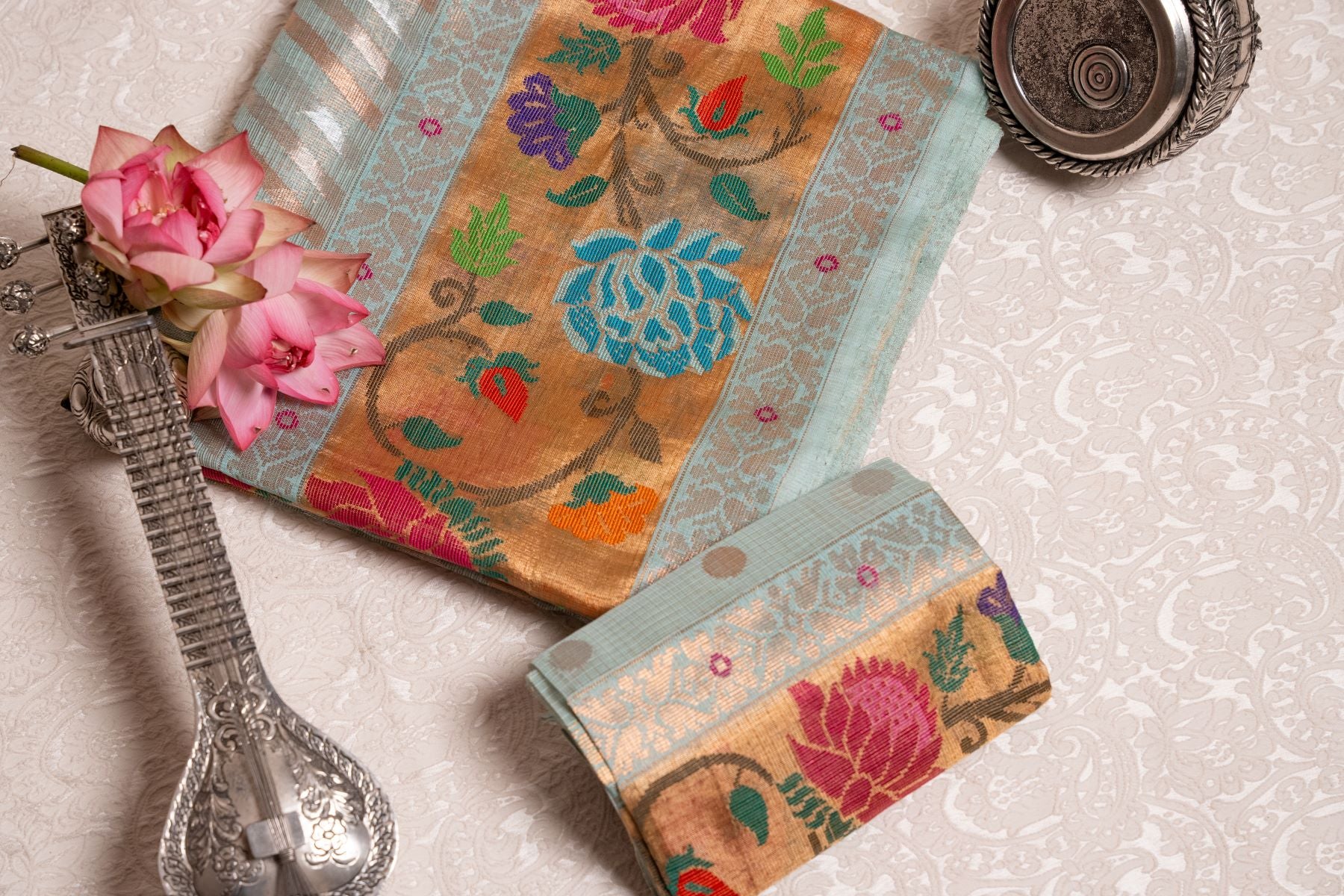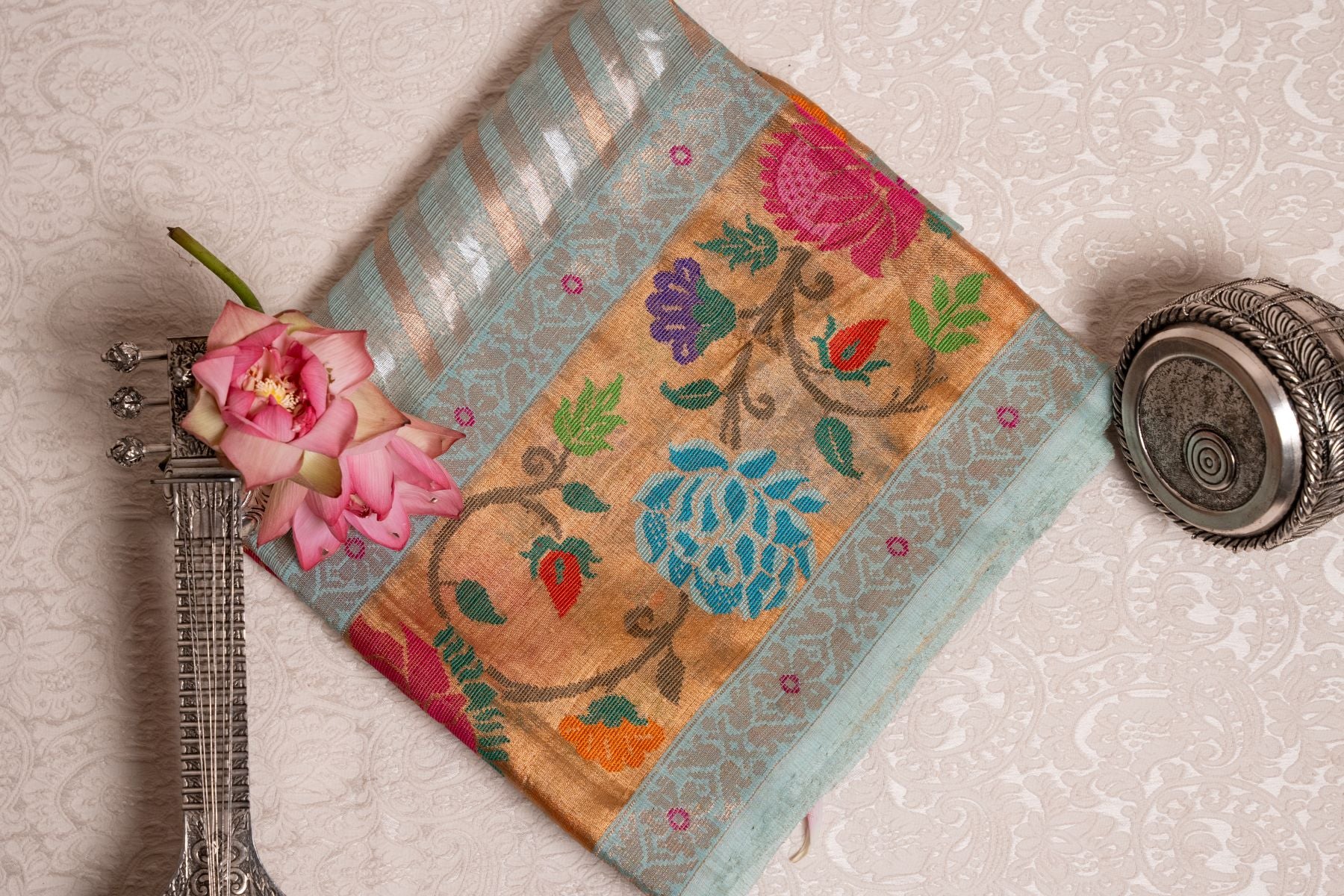 Sky Blue Real Zari Tissue Kota Saree with Lehariya Stripes & Paithani Border
