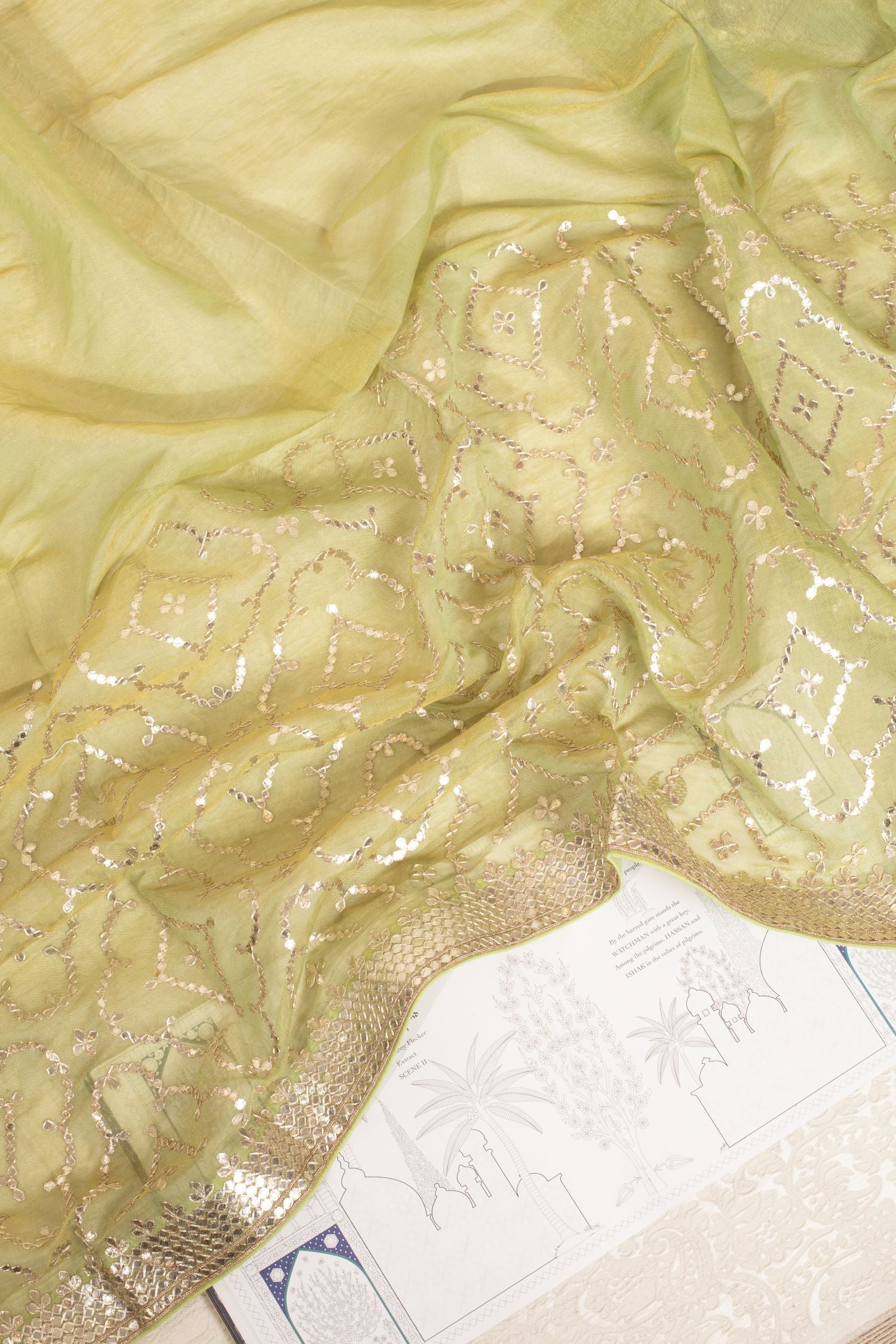 Handwoven, real zari Kota saree with a floral jaal body in silver zari. The highlight of the saree is the exquisite Paithani border. The body color is canary yellow, and it comes with a contrast tissue blouse in dark pink with a matching Paithani border. Ideal for occasions such as haldi, mehendi, and weddings.