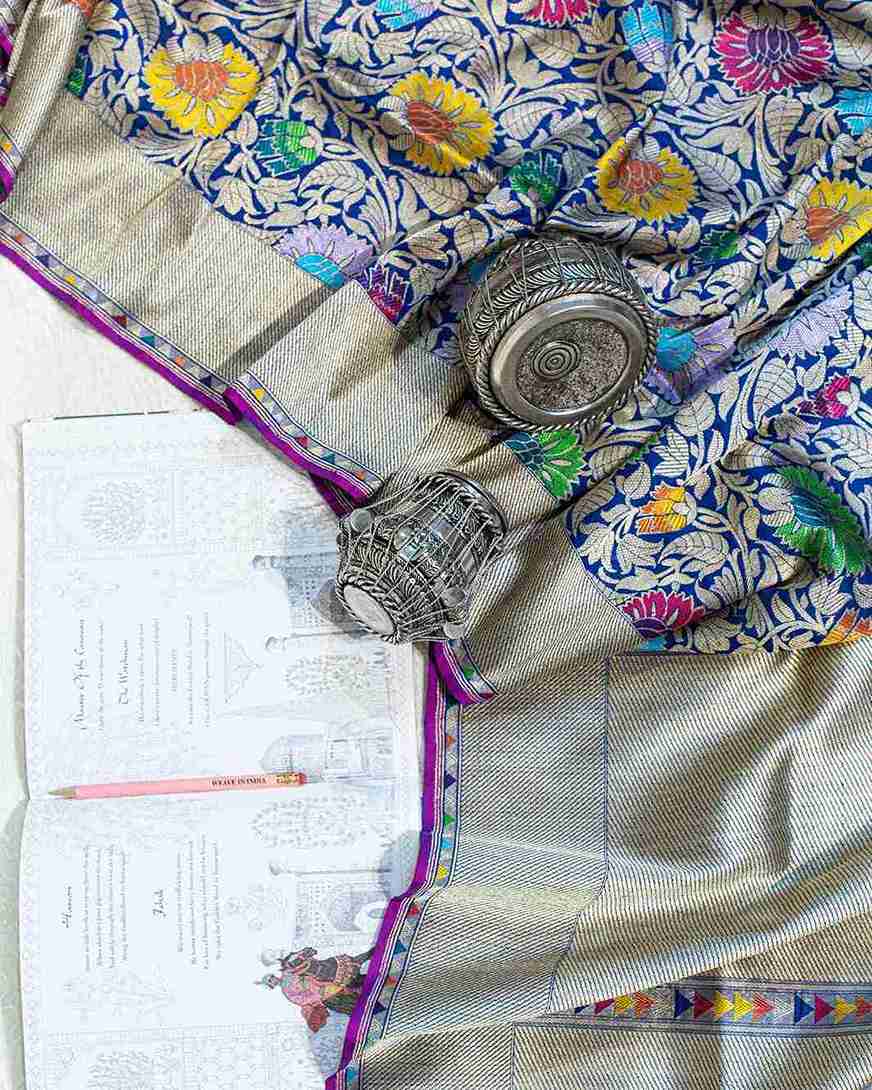 Royal Blue Kadwa Weave Banarasi Silk Saree with Meenakari Artistry