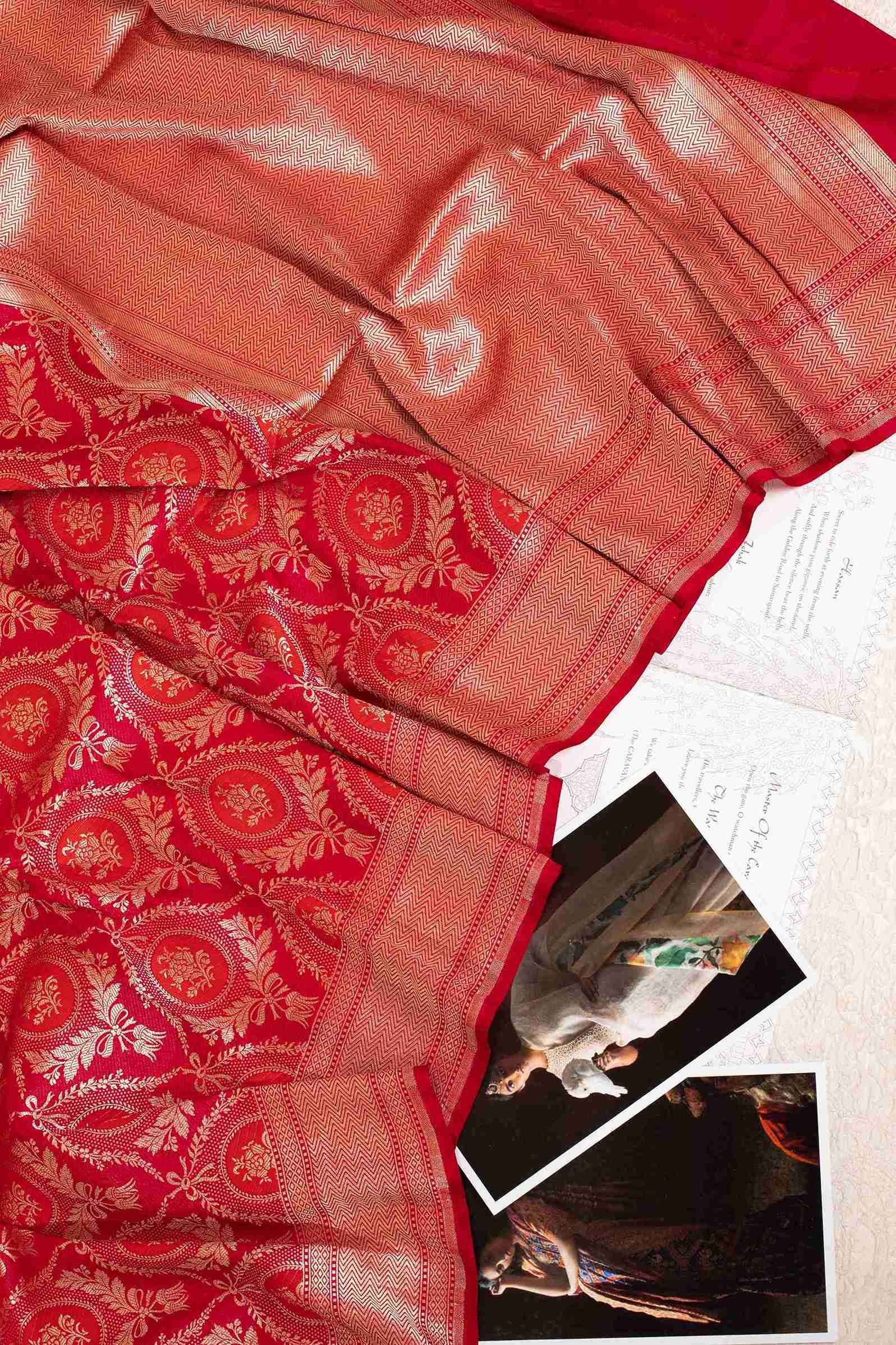 Rubine Red Limited Edition Handwoven Banarasi Saree