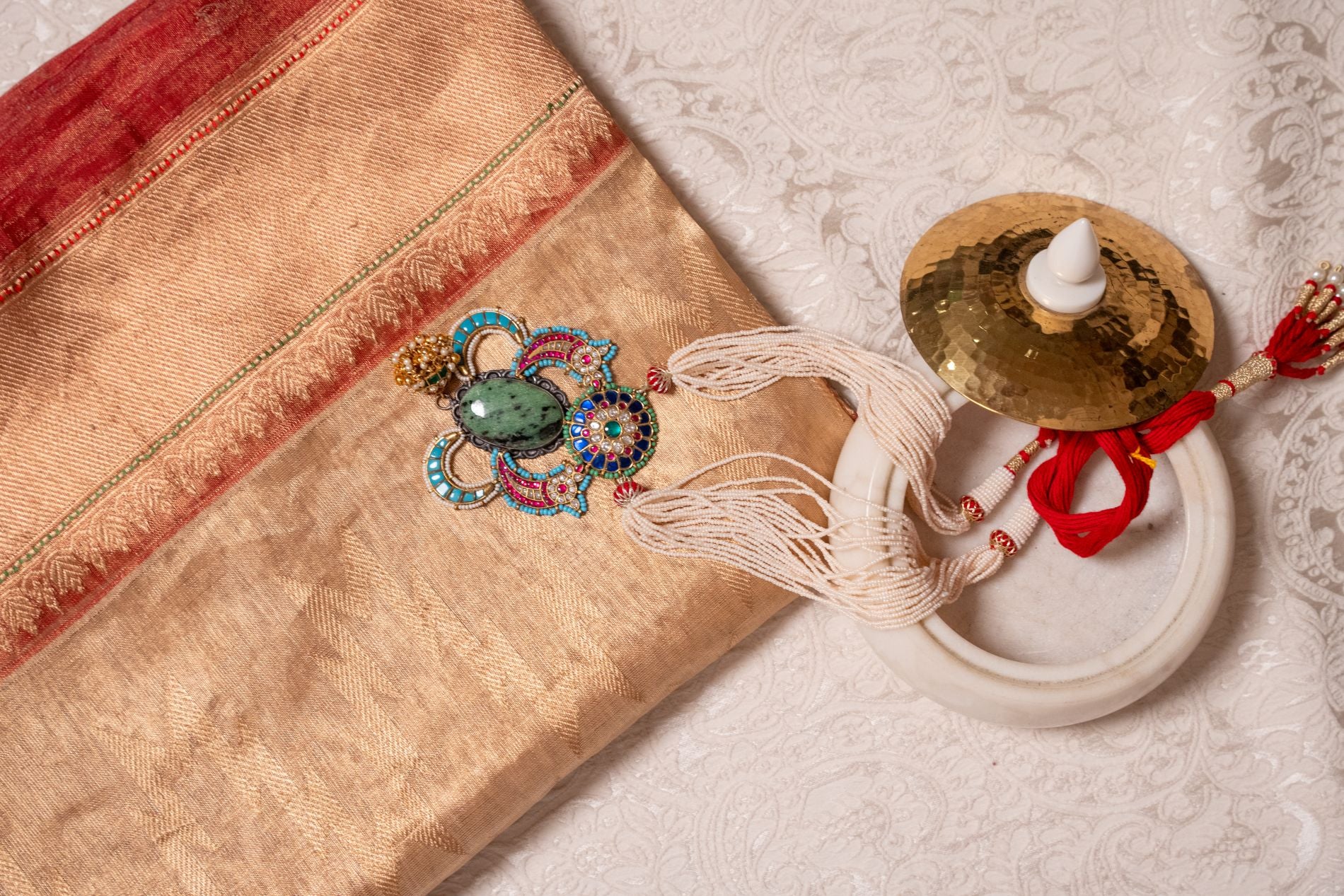 Material: Pure Tissue Silk with Silver & Gold Weave